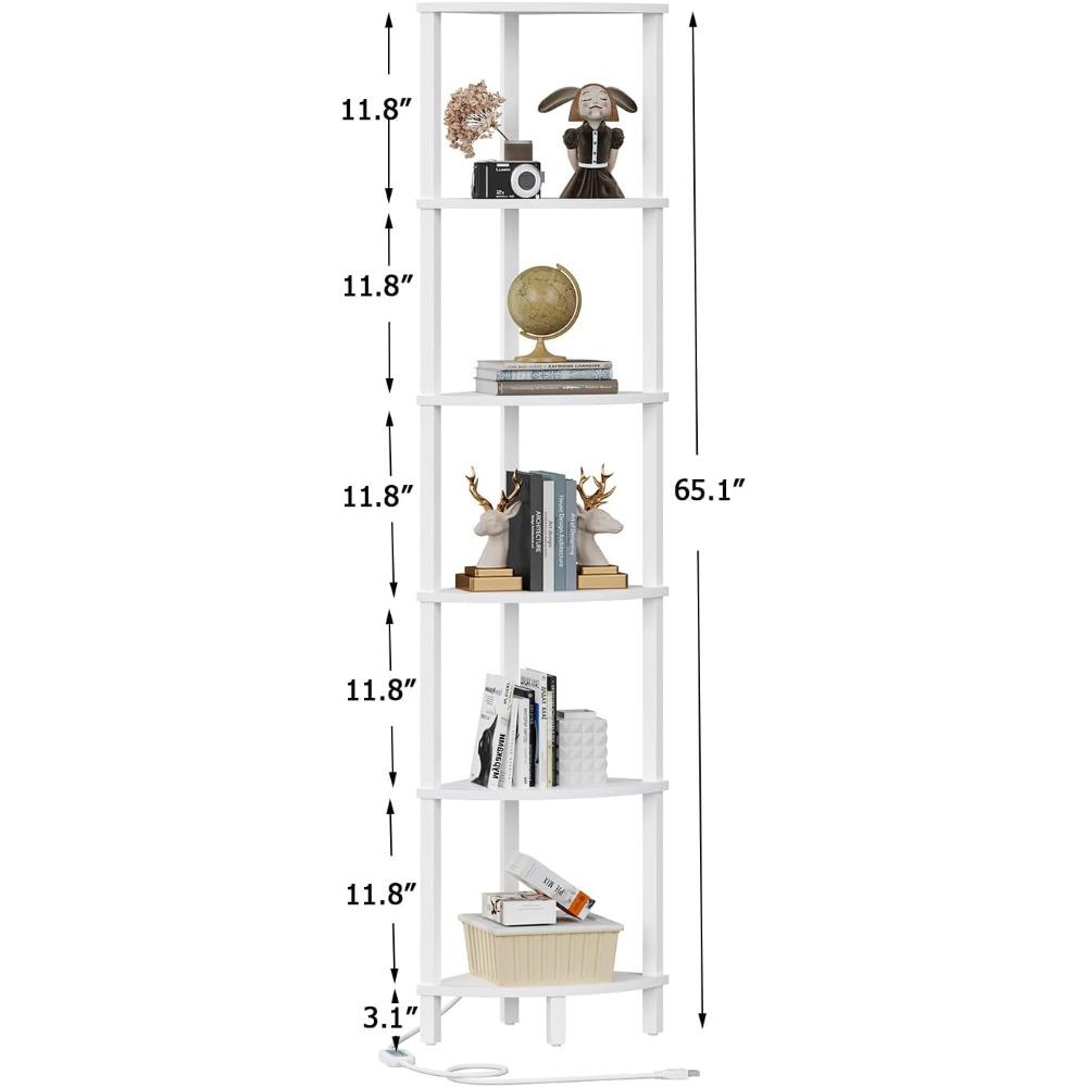 Corners Shelf with LED Light, 6-Tier Corner Bookshelf, Industrial Corner-Ladder Shelf, Modern Display Shelf for Living Room