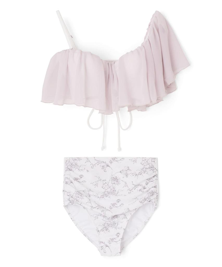 Swimwear Bikini Lightweight and Comfortable To Ruffled Wire Pink [Sanai Paradise] Set, Wear, [Easy-to-wear Swimsuit] One-shoulder Bikini,