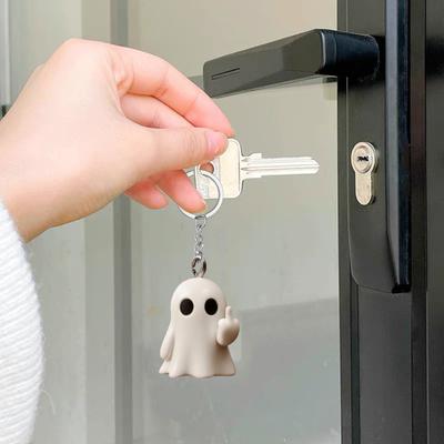 Halloween Keychain Ghost Middle Finger Styling Resin Figurine Key Chain Home Office Desk Festive Decoration