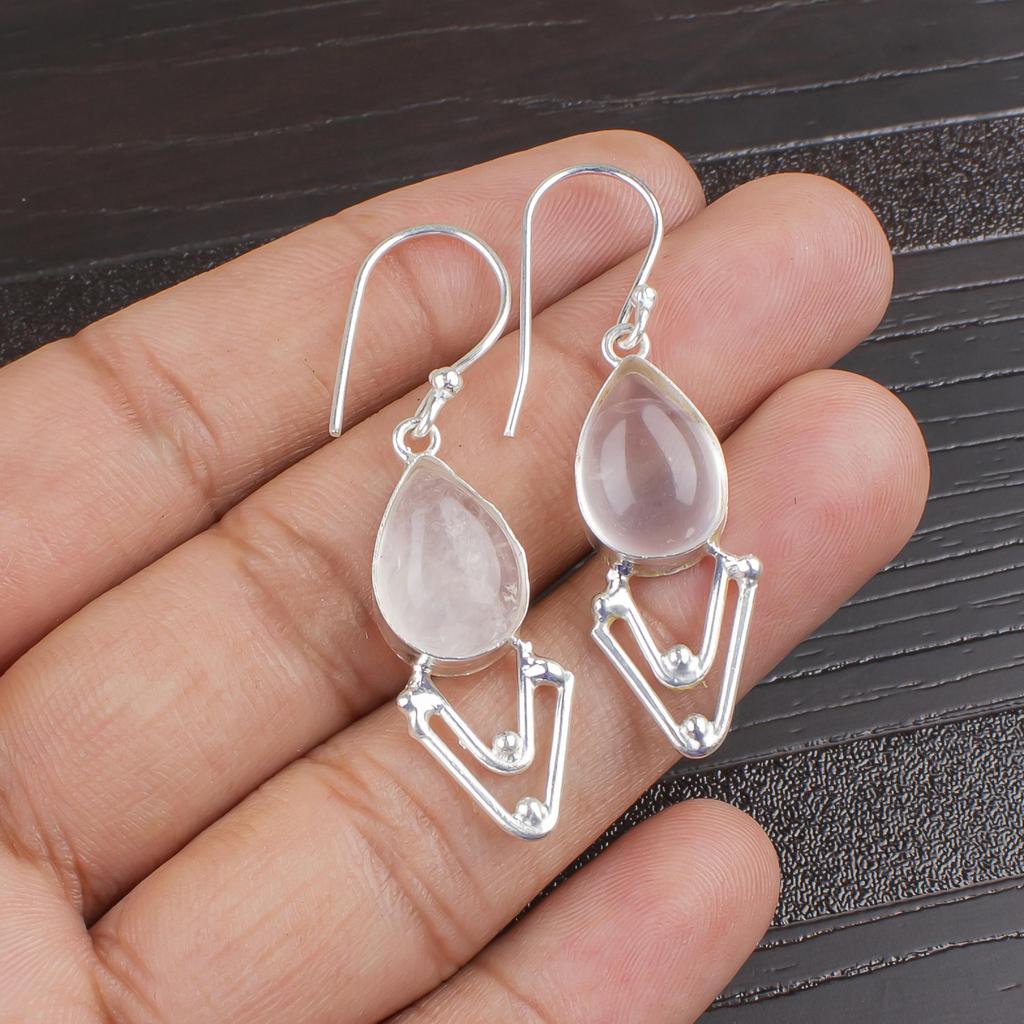 Rose Quartz 925 Solid Sterling Silver Earrings, Handmade Gemstone Earrings Jewelry, Gifts For Wife Brand New Earrings