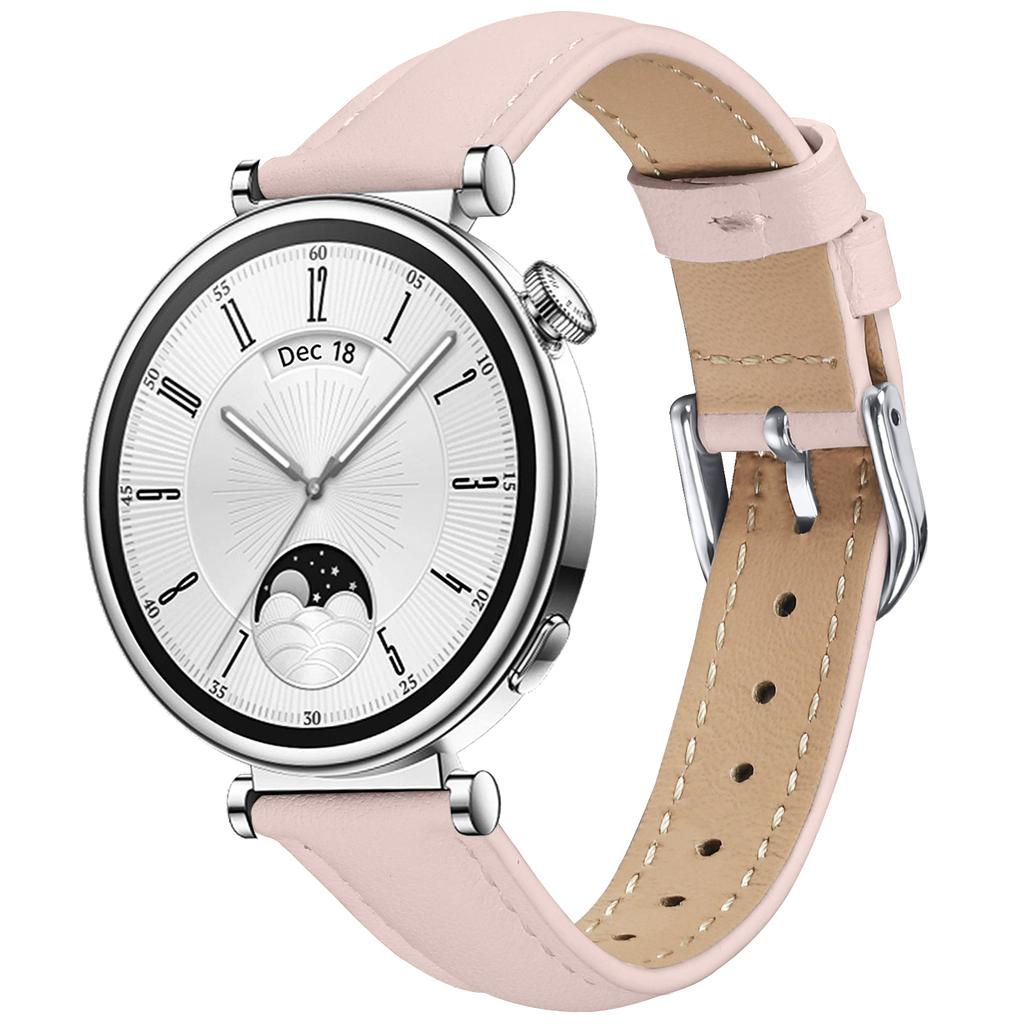 For Huawei Watch GT 5 41mm Watch Band 18mm Slim Genuine Cow Leather Strap with Silver Buckle