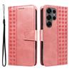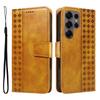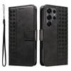 For Samsung Galaxy S25 Ultra Leather Case Wallet Stand Grids Imprinted Phone Cover with Strap