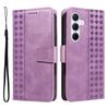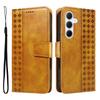 For Samsung Galaxy A55 5G Leather Case Wallet Stand Grids Imprinted Phone Cover with Strap