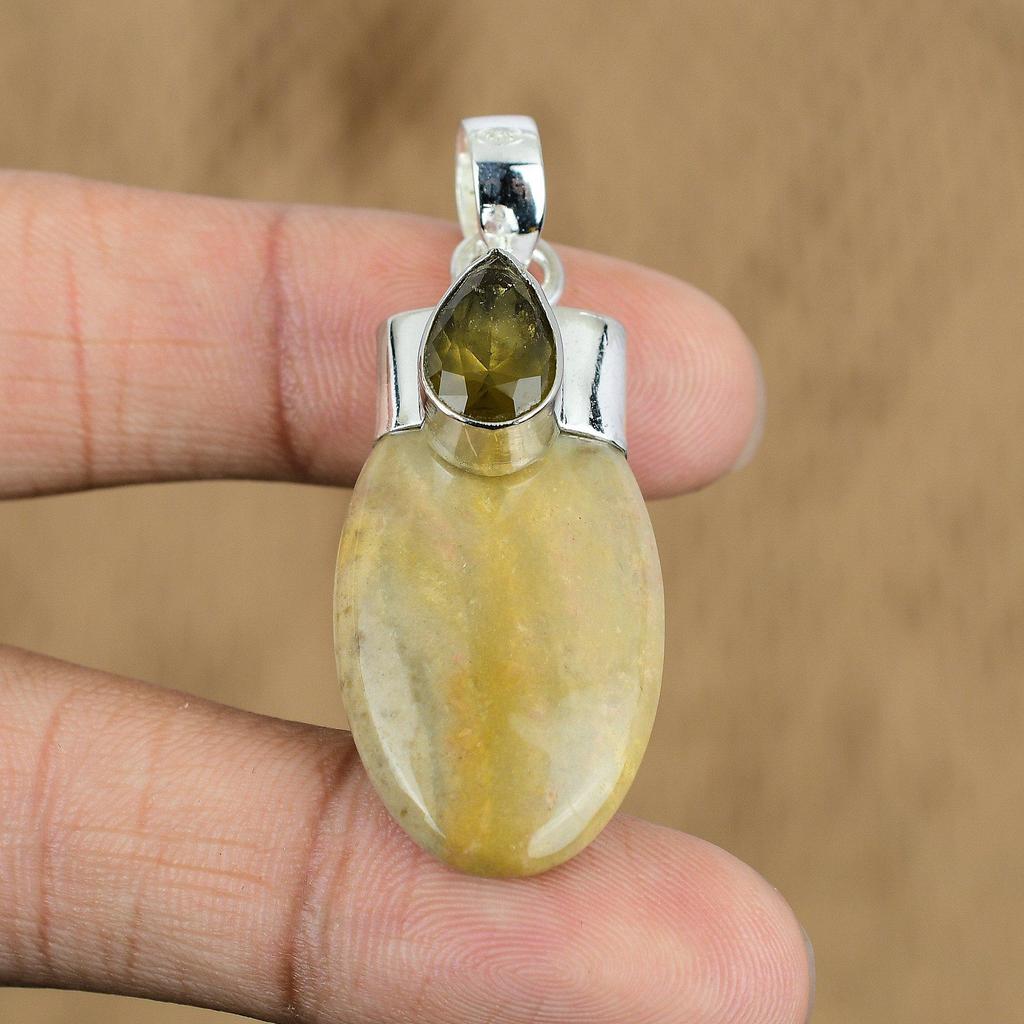 Natural Picture Jasper Gemstone Pendant 925 Sterling Silver Jewelry For Women