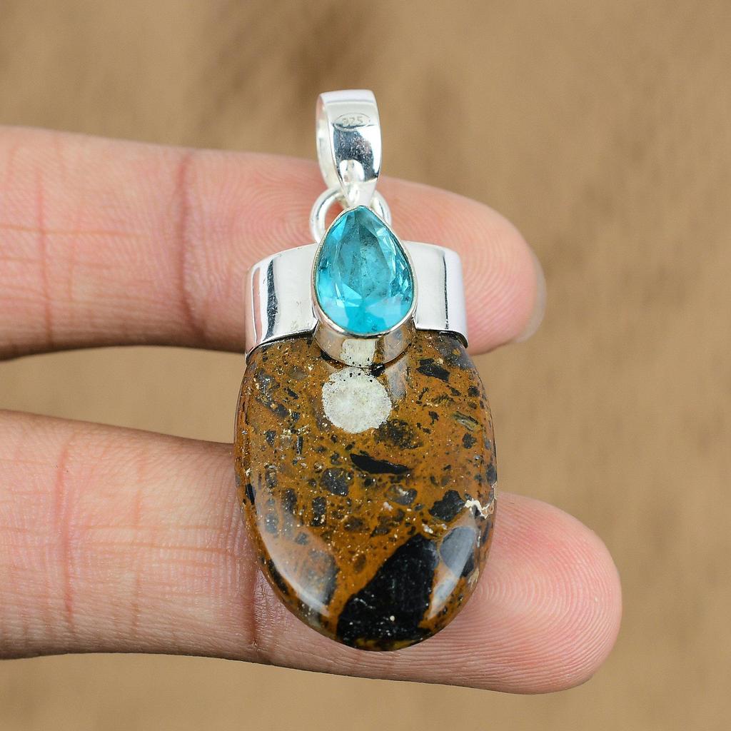 Natural Golden Pietersite Gemstone Pendant Gold 925 Sterling Silver Jewelry
