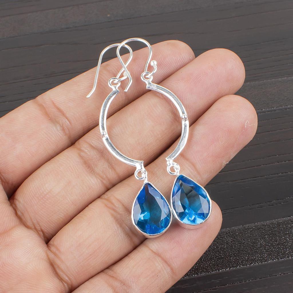 Swiss Blue Topaz 925 Sterling Silver Jewelry, Handmade Gorgeous Silver Earrings, Beauteous Topaz Gemstone Jewelry For Love