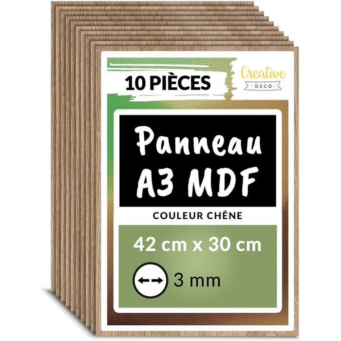 Planche de MDF - Creative Deco - Lot de 10 - 420x300mm - Bois Brut - Découpe Laser, Gravure