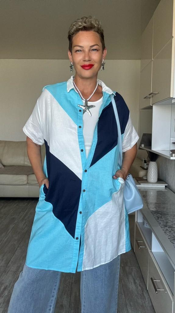 DIMANAF Plus Size Linen Blouse Dress Women 2025 Colorful New Summer Style Shirt O-Neck Loose New