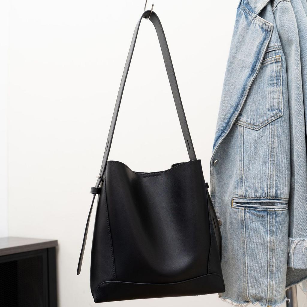 Leather Shoulder Women's Bag, Large-capacity Single-room Messenger Bucket Bag, Fashionable and Simple Shopping Bag, Good-looking Bag.