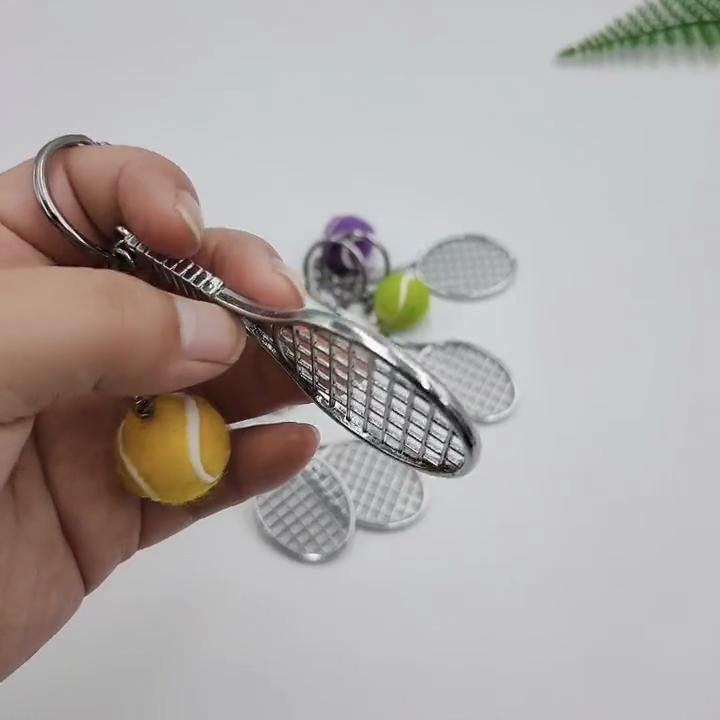 SCIONE Creative Alloy Tennis Key Chain DIY Sports Tennis Racket Pendant Mini Tennis Key Chain Two-piece Pendant Small Gift
