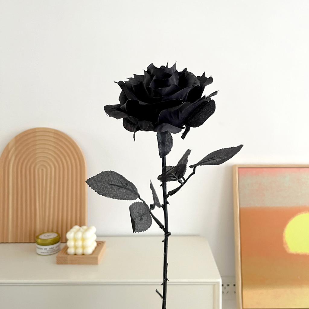 1pc Pure Black Rose Mock Bouquet Halloween Horror Gothic Dark Decor Immortal Flowers Plastic Flowers