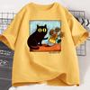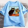Kids Cat Graphic T Shirts Girl Boys Flower Black Cat T-shirt Round Neck Cotton Short Sleeve Trendy Tee Shirt Streetwear