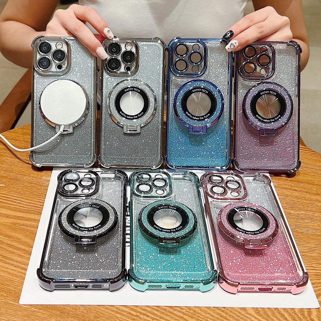 Gradient Electroplating Four Corner Anti-fall 11 Suitable for IPhone 16E Mobile Phone Case Apple 15 Flash Powder Magnetic Bracket Sheath 3