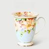 Fine Bone China Coffee Mugs Set of 4, Hand Drawn Gold Rimmed Floral Mugs, Porcelain Bone China Tea Cup with Lid, 300ml Elegant Office Home Tea Sets