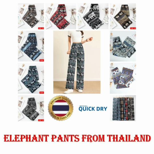 Long Elephant Pants Adjustable Elastic Waist Rope Loose Legs Women Men Unisex Print Thailand Casual Streetwear Beach Bohemian Retro Vintage