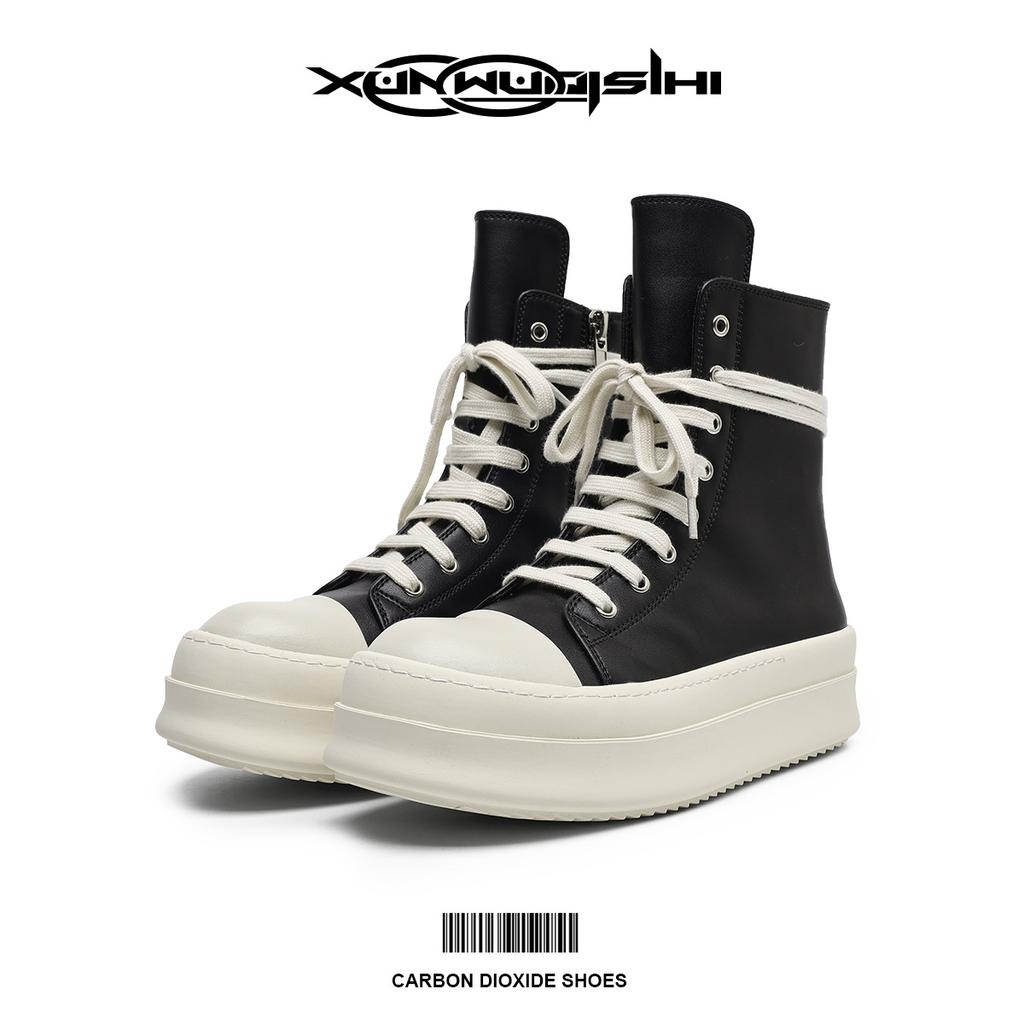 Dark Autumn and Winter Men and Women Couples Thick-soled High-top Shoes Cowhide Heightening Fashion Casual Martin Boots Muffin Shoes