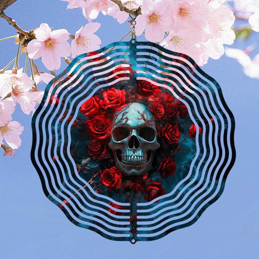 Kaijit - 1pc Mandala Inspired 2D Rose Skull Pattern Wind Spinning Wind Chime, Garden & Patio Decoration - Metal Hanging Ornament, No Battery Required
