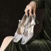 Leather Retro Pleated Square Head Mary Jane Shoes Women's Word with Chain Thick Heel Single Shoes