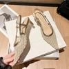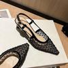 Breathable Mesh Yarn Bag Head Sandals Single Shoes Summer Pointed Muller Shoes Stiletto High Heels One-word Buckle Belt