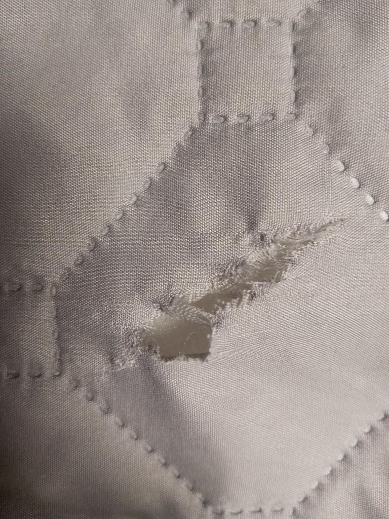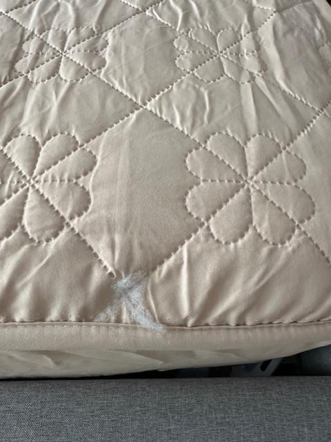 The mattress protector is cut, and they put it in the package already cut. There were two other items in the package, they are not damaged, the packaging is also intact. It turns out that they put a damaged item in.