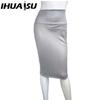 IHUASU Women's Fashion Casual Back Slit Solid Color Print Summer Spring Skirt
