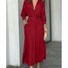European American Women's Blue Dress Elegant Temperament Spring Summer Commuter Long Sleeved