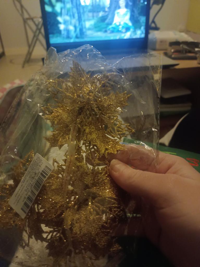 Hello dear Joom employees. Very beautiful, delicate flowers, but please tell me how they should be attached to the Christmas tree. They didn't include threads or anything else so that they could be hung on the tree.