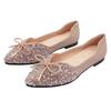 Single Shoes Women's Summer New Versatile Pointed Laden Shoes Flat Sequins Bridesmaid Shoes Fat Feet Large Size Women's Shoes