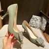High Heels Women's Fashion Thin Heels Single Shoes New Pointed Head Shallow Mouth Suede Rhinestone Square Buckle Women's Shoes