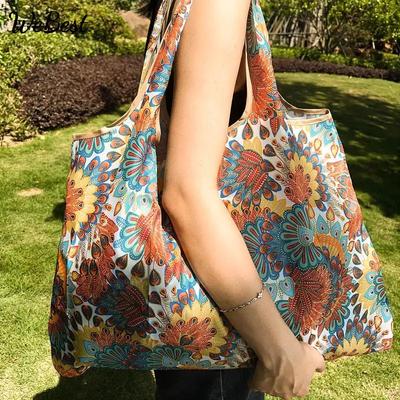 Shopping Bag Printing Foldable Polyester Casual Large Capacity Groceries Bag Household Supplies