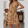 Women Summer Short Sleeve Round Collar Flower Printed One Piece Dress