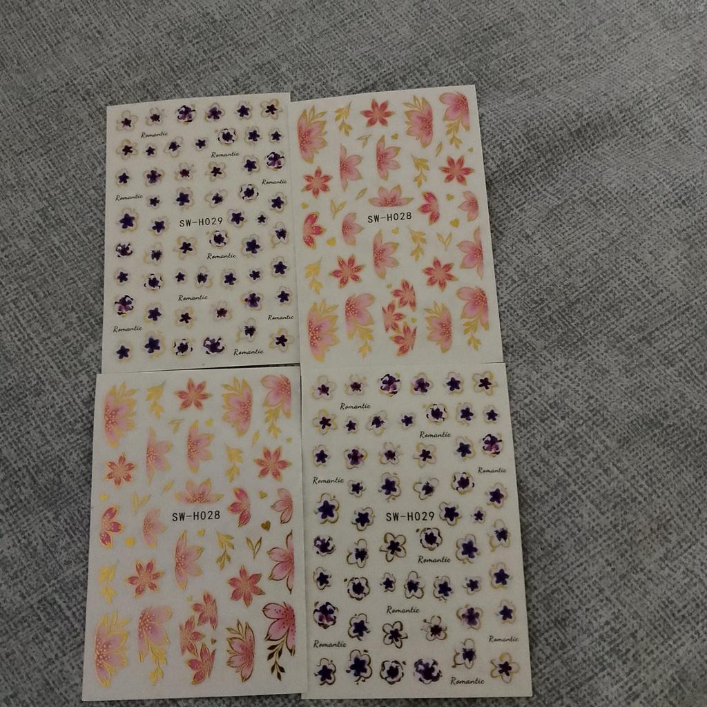 2PCS 3D Nail Stickers Flower Plants Nail Art Decals Floral Leaf Spring Sliders Manicure Decor