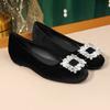 Flat Bottom High-end Rhinestone Square Buckle Satin Single Shoes Women's Summer 25 Spring New Gentle Wind Shoes