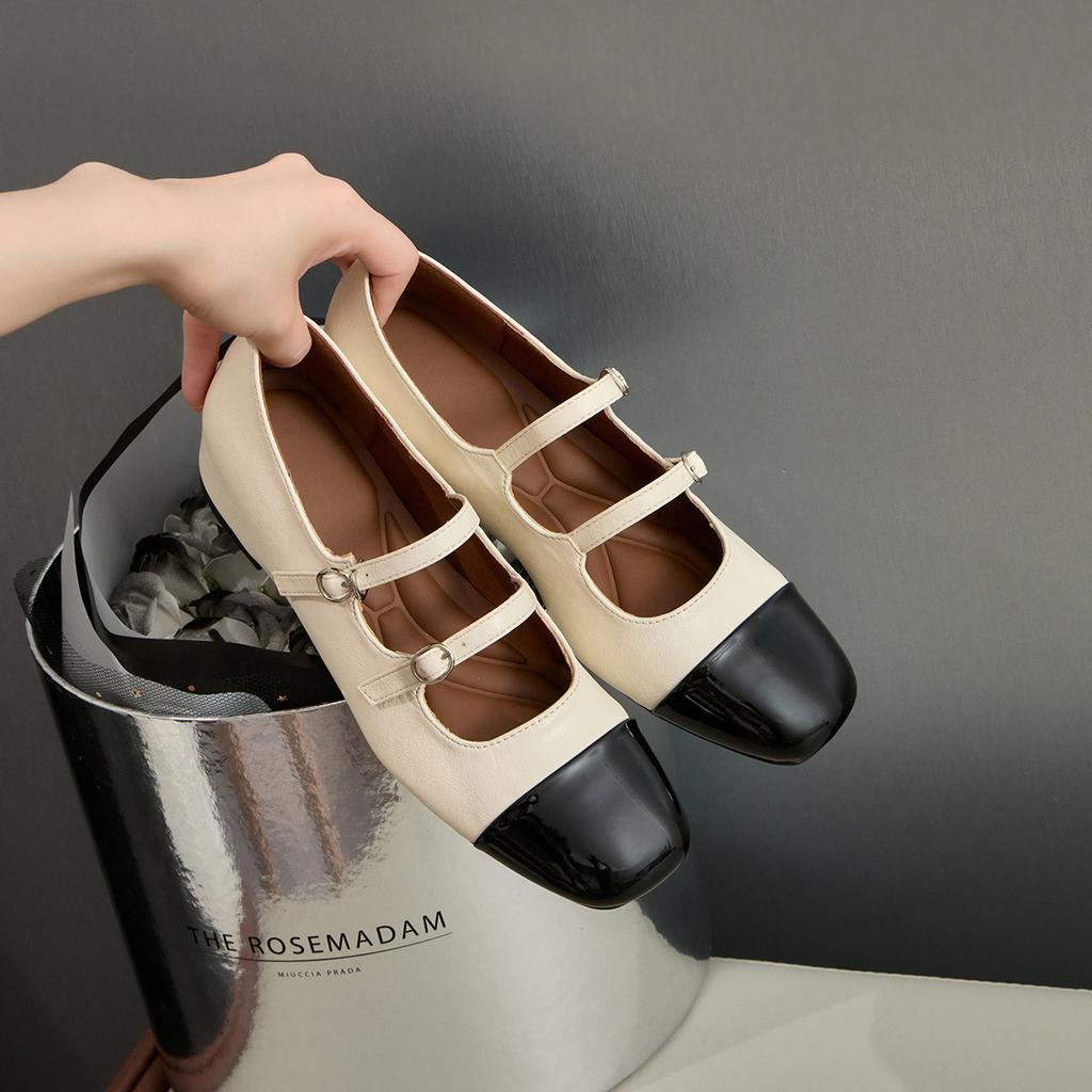 Inner Height Increase Single Shoes Women's Small Fragrant Mary Jane Shoes Double Belt Color Matching Retro Height Increase Short Light Mouth