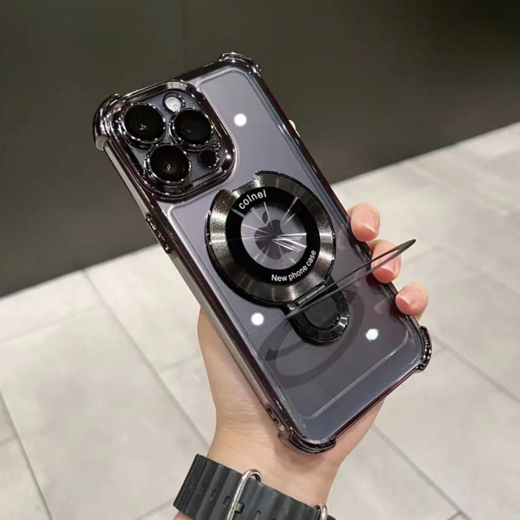 IPhone 16 Magnetic Suction Bracket Airbag Four Corners Anti-fall Suitable for Apple 15pro Mobile Phone Case Electroplated Acrylic 16e