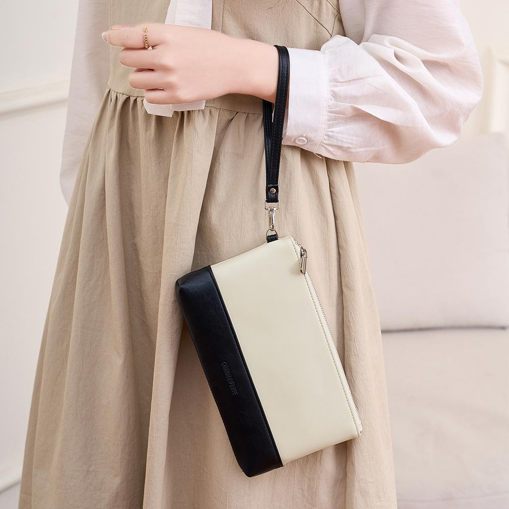 New Multi-functional Women's Clutch Bag Splicing Contrasting Colors Fashionable Handbag Simple Large-capacity Mobile Phone Wallet