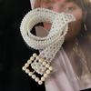 Pearl Ladies Belt Elastic Beaded Waist Chain Women'S, Simple Rhinestone Inlaid Square Buckle Waist Seal Tide