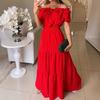 YYFS Women's Fashion Summer Spring Solid Color Print Short Sleeve One Shoulder High Waist Casual Dresses