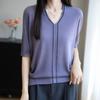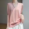 Summer Women's Silk Knit Sweater Short Sleeve V-neck Diamond Knitted Sweater Loose Knit T Shirt Top