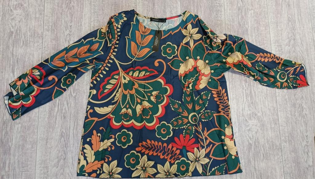 The blouse is cool. Underarms 57 cm. Along the bottom 65 cm. XL is most likely for size 54.