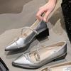 Spring and Summer 2025 New Light Luxury Curved Rhinestone Temperament Versatile Pointed All-inclusive Square Heel Soft Sole Single Shoes Women