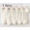 5 Pairs of Socks: White Short Socks for Women, Cotton Socks, Summer Thin Style, Summer Trendy Short Leg, Cute, Spring and Autumn Style Boat Socks