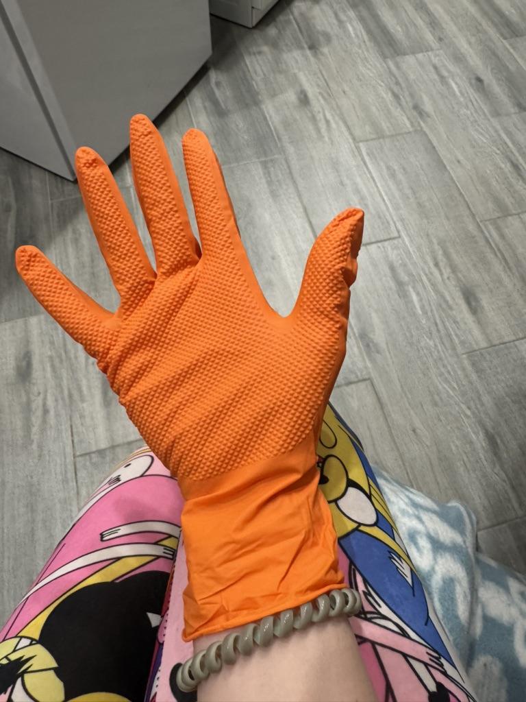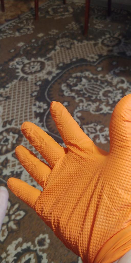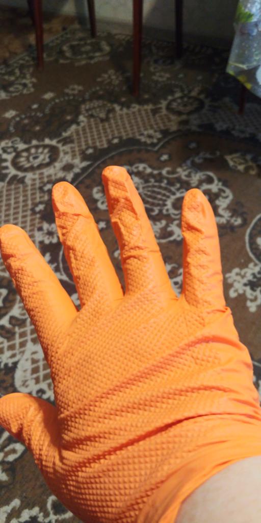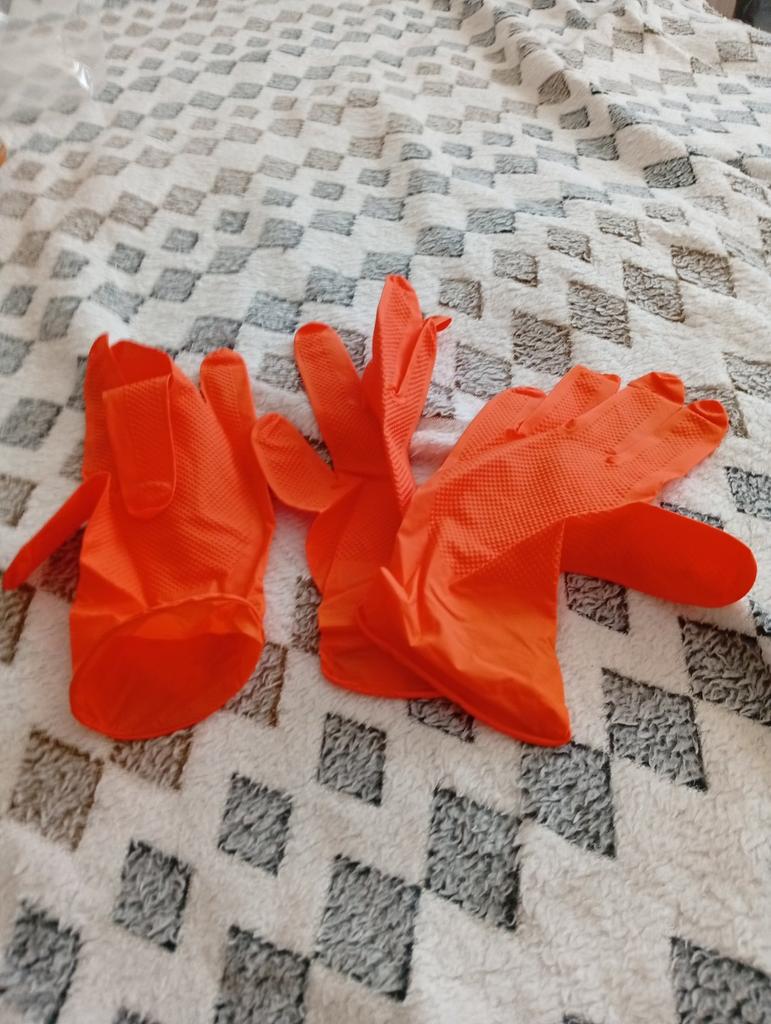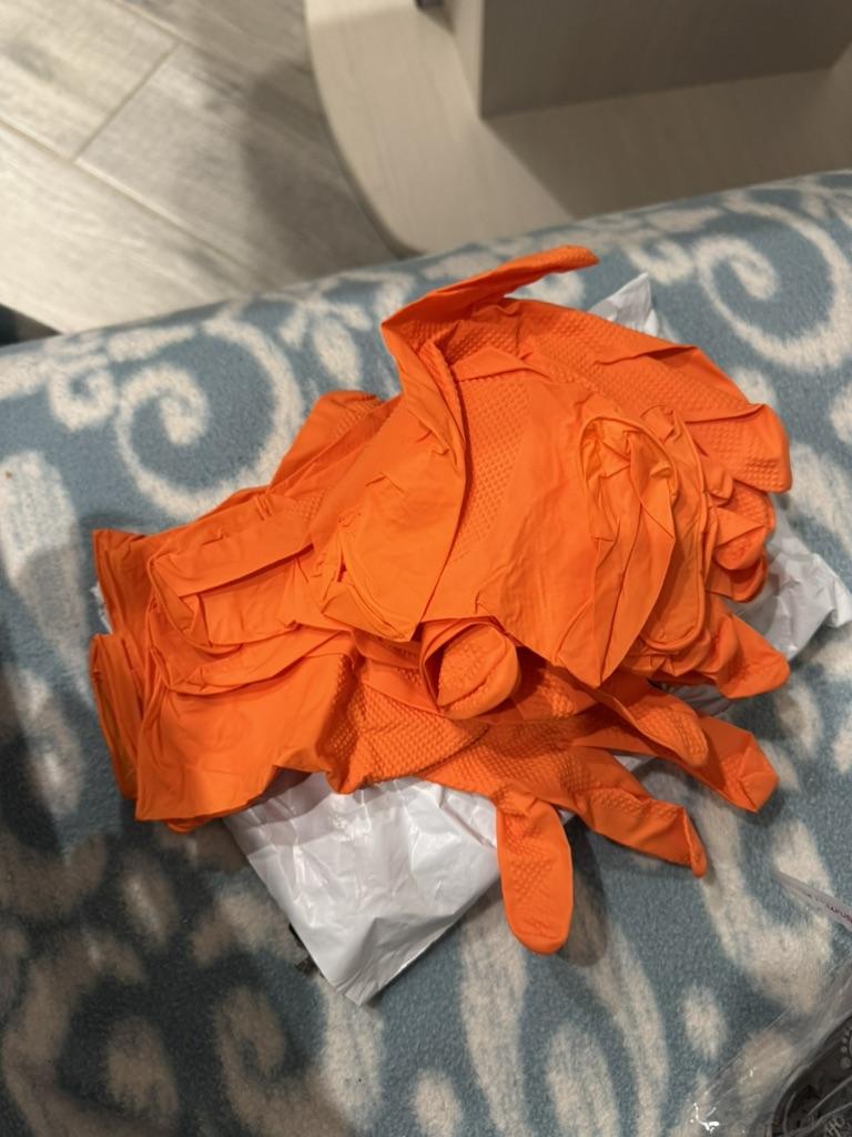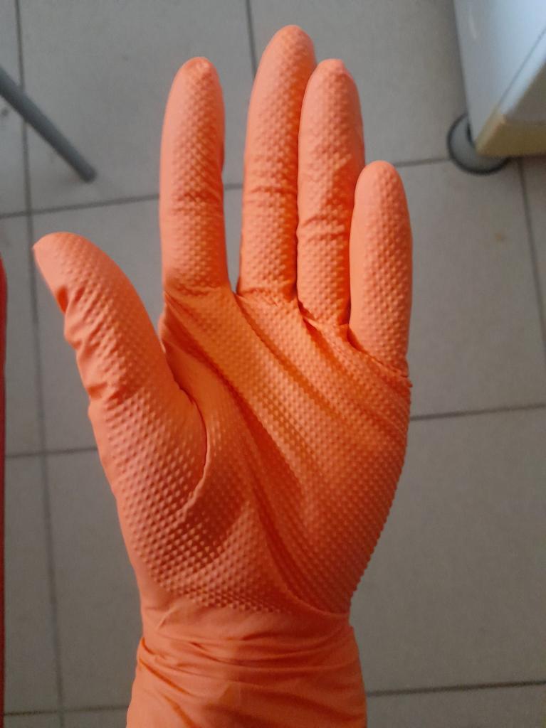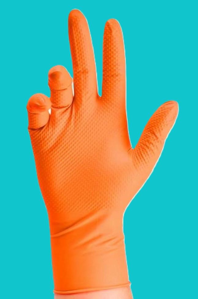 100-1pcs Heavy Duty Orange Nitrile Disposable Gloves with Diamond Textured Grip for Industrial and Mechanic Safety