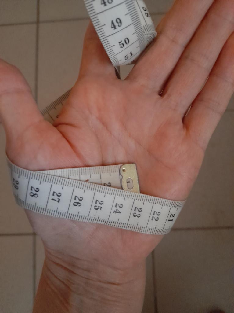 The gloves are very small. They arrived compressed into a single lump.. Size M on the palm 8 cm stretch with great difficulty. But first you need to straighten the rubber.