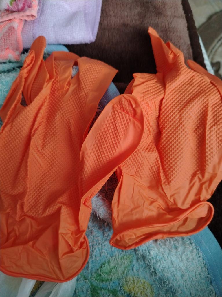 Ordinary nitrile gloves, you could have bought those here too. Purchase at your discretion b