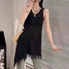 Summer Women Sleeveless Solid Hollow Out Tassel Knitted Sweater Pullover Long Tops