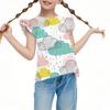 Children's Casual Short-Sleeved Pleated Cute Floral Printed Round-Neck Top