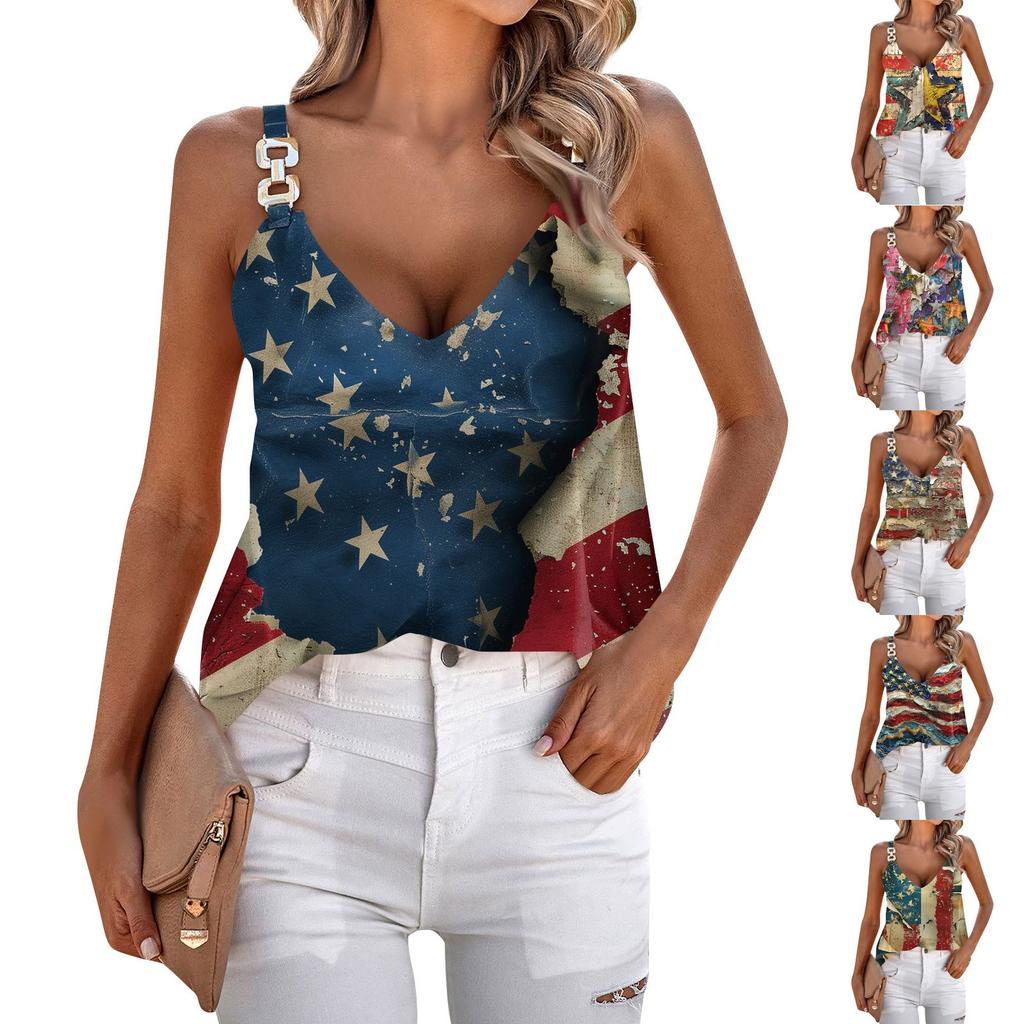 Womens Summer Tank Tops Strap Casual Loose Fit V Neck Sleeveless Print Tops