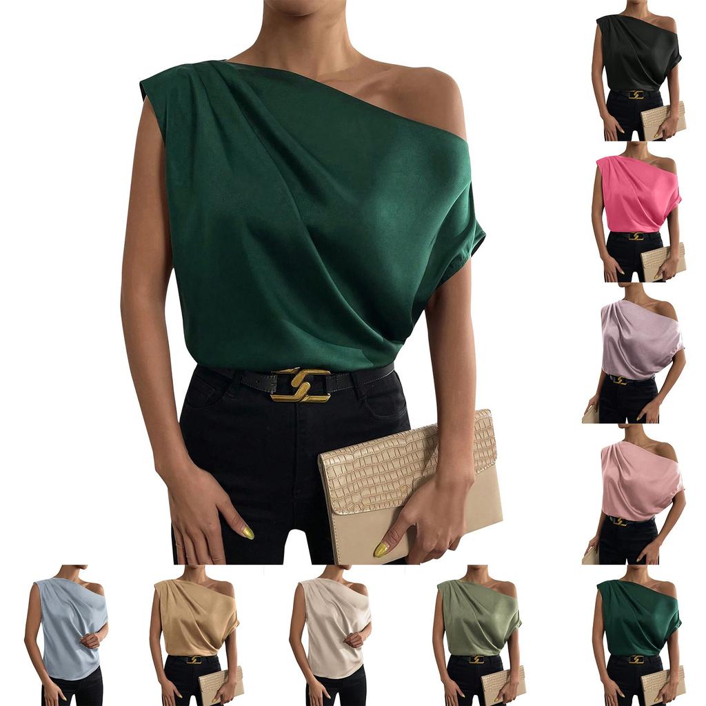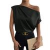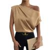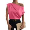 Summer Fashion Versatile Slant Collar Pinch-pleated One-Shoulder Asymmetric Vest