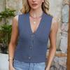 Fashionable Women's Solid Color Knitted V-neck Button Vest